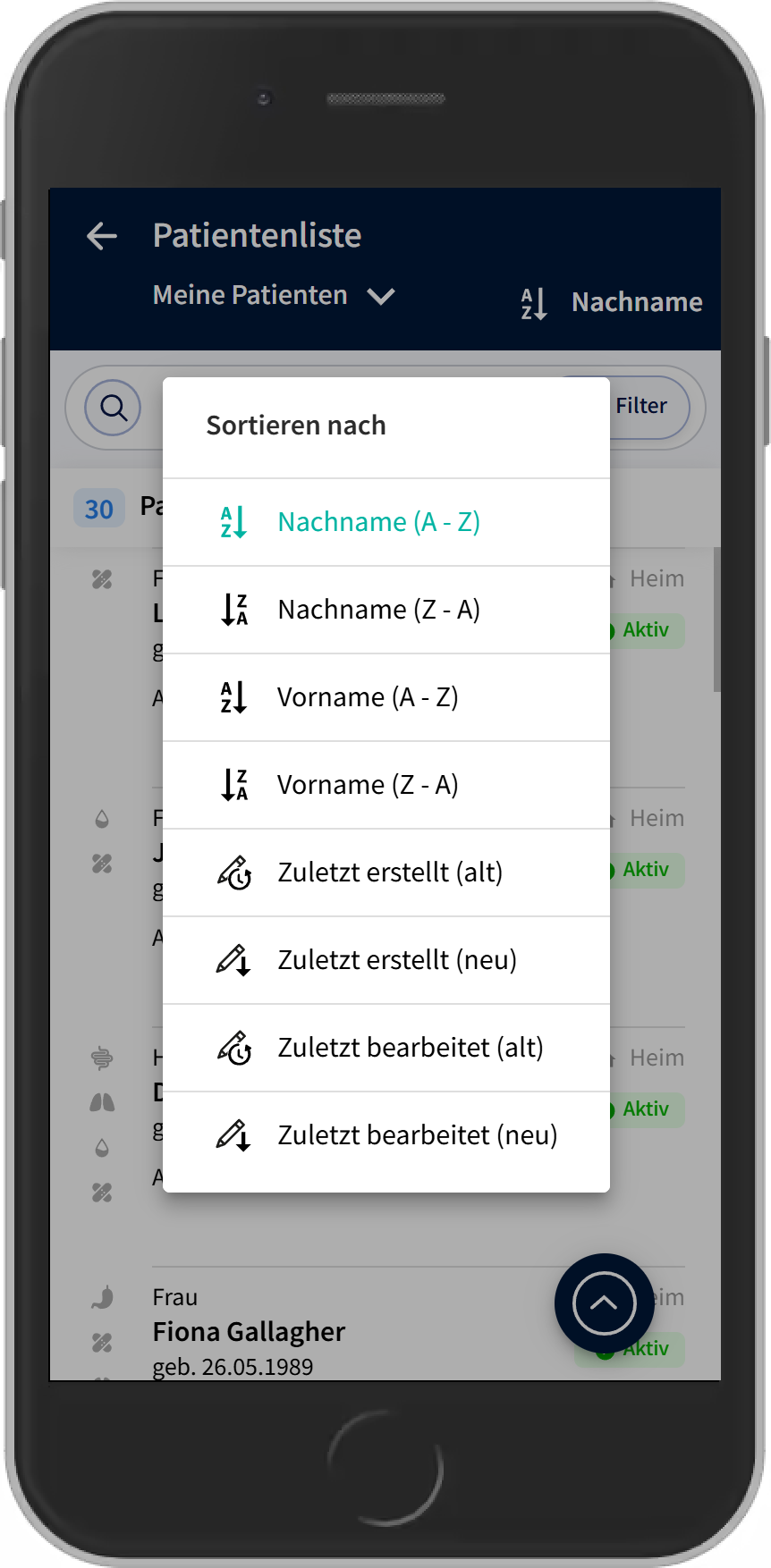 Sortierung in der Patientenliste