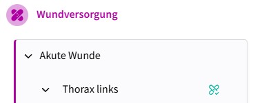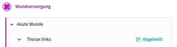 • Um Wunden als abgeheilt zu markieren wird neben der Gruppierungsebene der Wundlokalisation der Button "Abgeheilt" angezeigt.