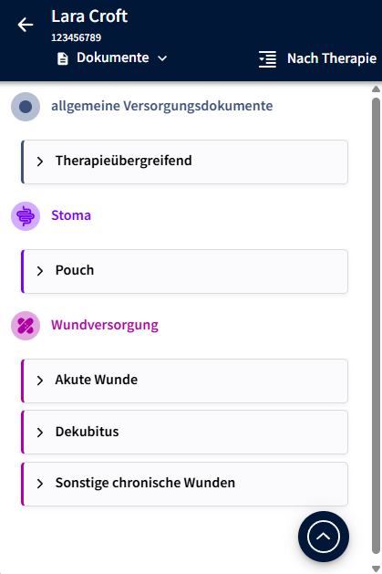 Die Standardansicht ist immer die Sortierung der Dokumente nach Therapie (siehe oben rechts "Nach Therapie" - mir Klick darauf kann die Sortierung der Dokumente und die Ansicht gewechselt werden).