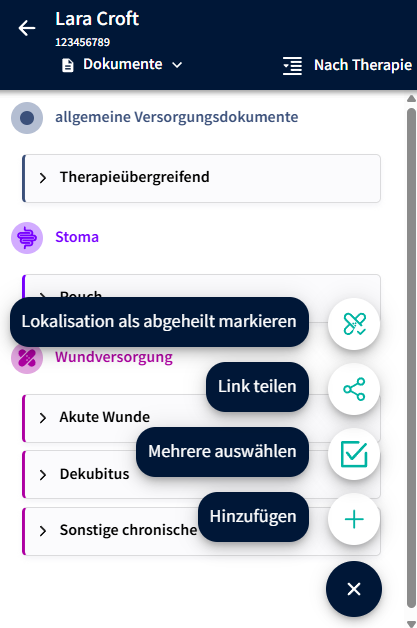Wird eine der Lokalisationen ausgewählt, werden alle zugehörigen Dokumentationen als abgeheilt markiert.