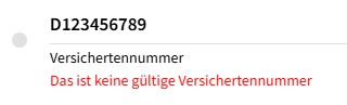 - Ein Speichern ist nur noch möglich, wenn die Versichertennummer der Norm (Länge, Format, Prüfsumme) entspricht, ansonsten erscheint eine Fehlermeldung: