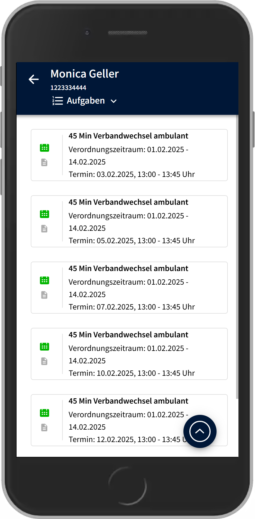 • 3) Die Besuchszeiten werden beim Erstellen des Leistungsauftrags automatisch aus der Versorgung übernommen. Beim Erstellen der Aufgaben werden die Besuschszeiten automatisch in die Aufgaben übernommen:
