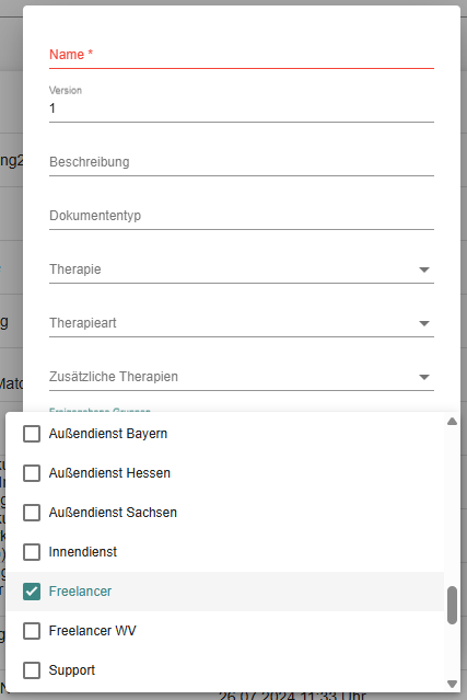 - In diesem Beispiel wird die Dokumentenvorlage jetzt allen UserInnen angezeigt, denen die Gruppe "Freelancer" zugewiesen ist.