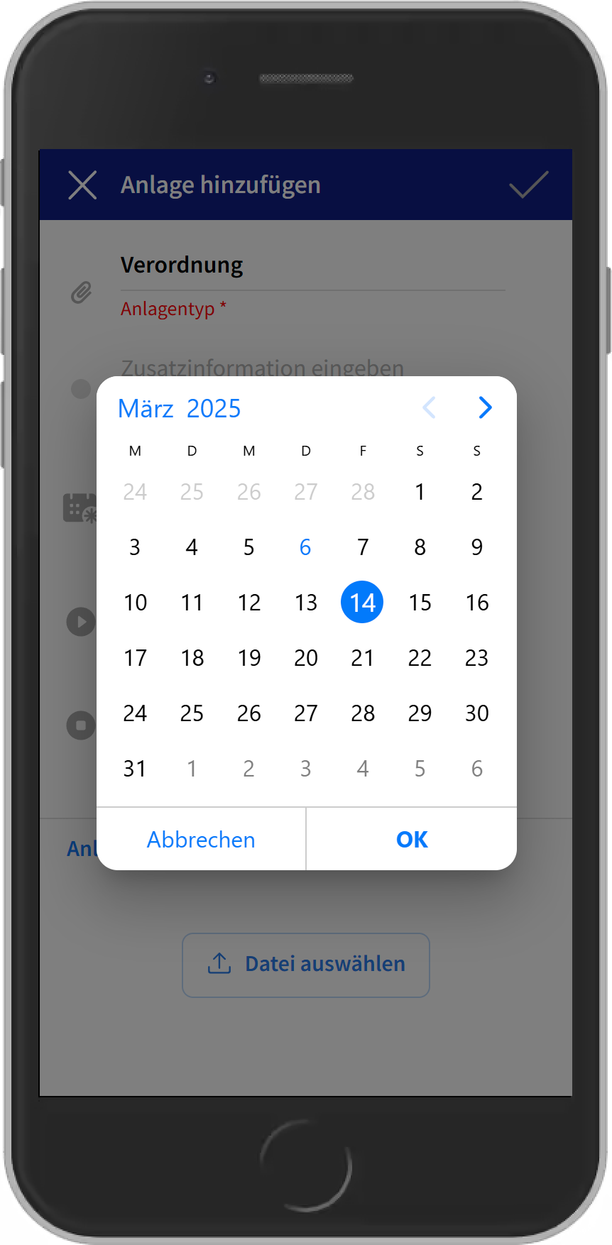 Die unterschiedlichen Daten kannst du ganz einfach über die Kalenderfunktion auswählen.