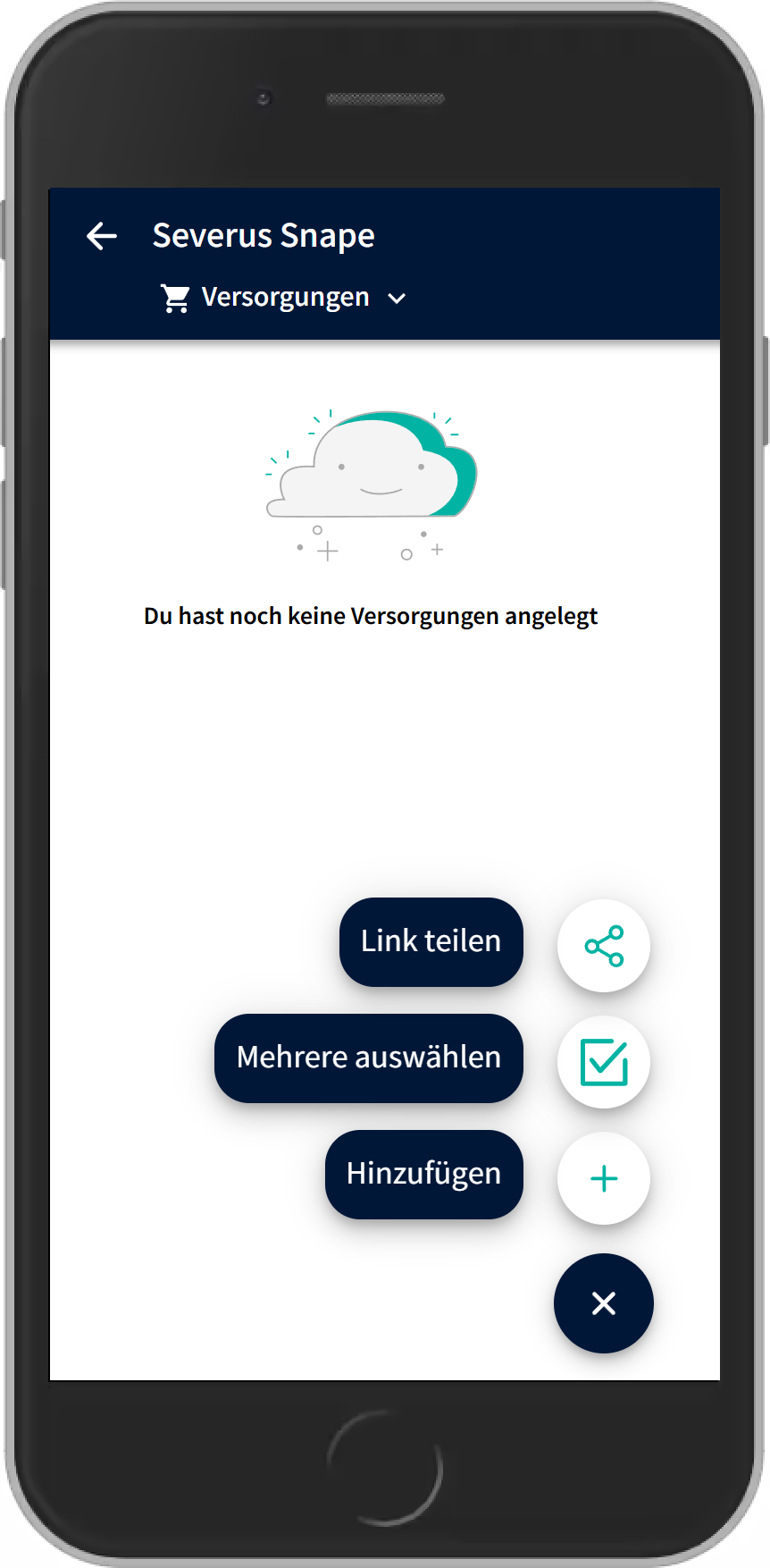 - Wenn du die Detailansicht öffnest (einfach auf die komplette Versorgungs-Kachel klicken" stehen dir noch weitere Aktionen zur Verfügung:
