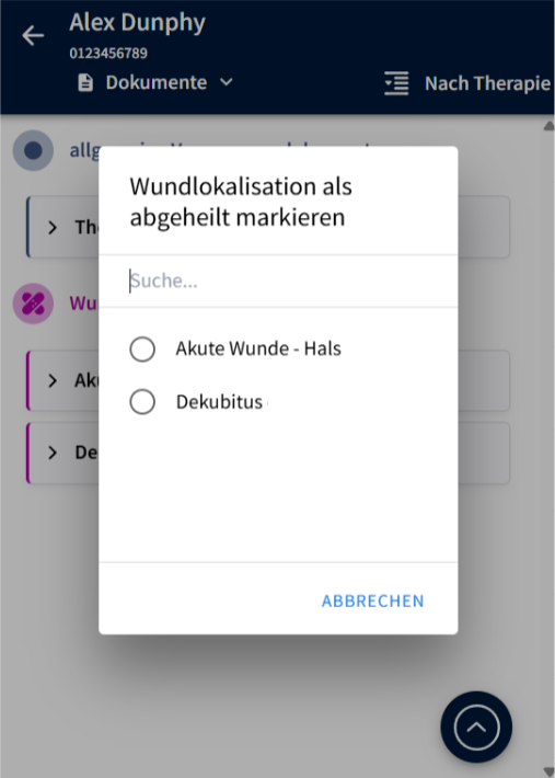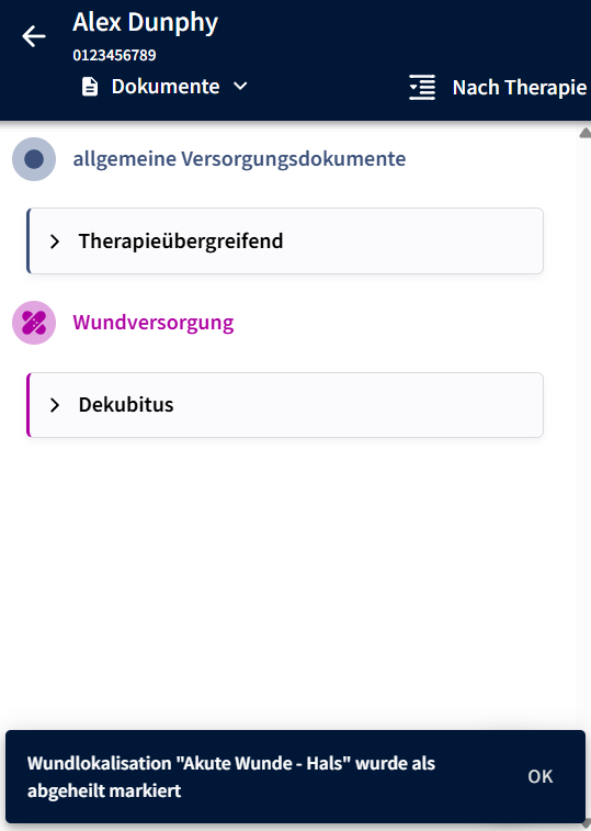 Neuerung: Wir haben die Therapieverläufe so angepasst, dass Dokumentationen, die als abgeheilt markiert wurden, keine Auswirkung mehr haben und nicht in den neuen Therapieverläufen gelistet werden.